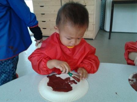 Atelier pate magique!! Encore une grande réussite, maïzena et eau, et beaucoup de fous rires!